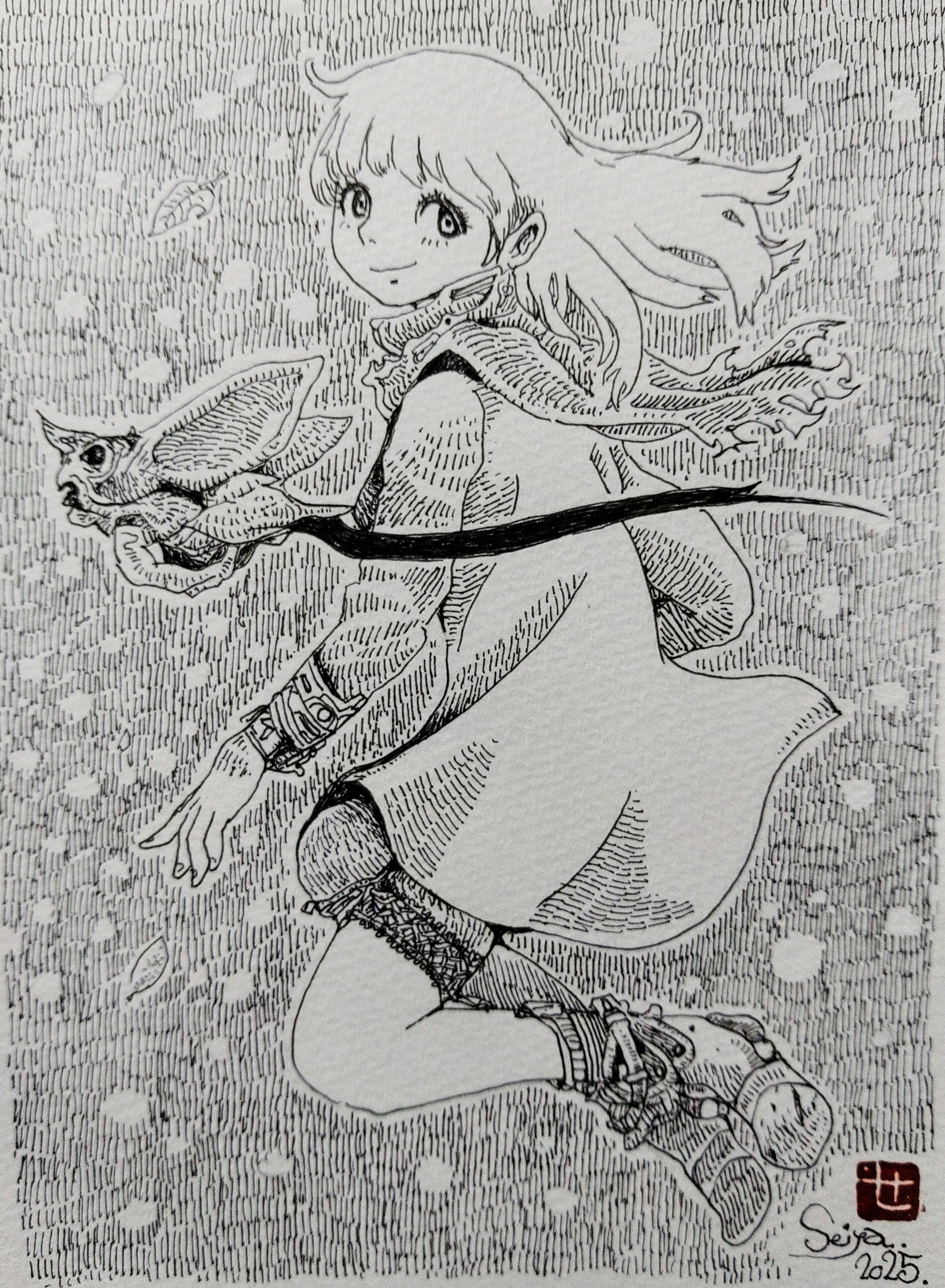 手描きペン画作品。
